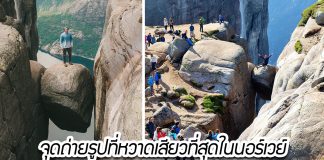Kjeragbolten หินลอยฟ้าเชื่อมระหว่าง 2 หน้าผาที่มีเหวลึก 3,228 ฟุต