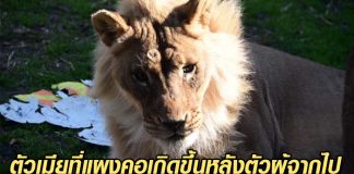 สิงโตแก่เพศเมียมีแผงคอขึ้นอย่างเป็นปริศนา หลังสิงโตตัวผู้ตัวสุดท้ายจากไป
