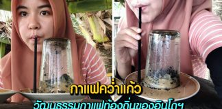 Kupi Khop กาแฟคว่ำแก้วของอินโดที่ต้องใช้หลอดดูดน้ำที่ซึมบนจาน