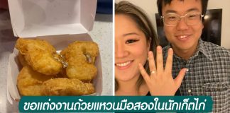 ดาวตลกออสซี่ขอแฟนสาวแต่งงานด้วยแหวนมือสองในนักเก็ตไก่