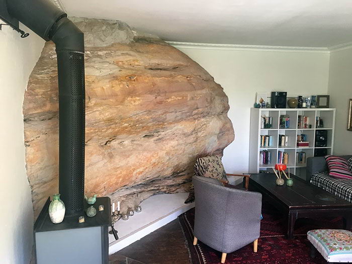 13. ห้องรับแขกของบ้านนี้ มีหินขนาดยักษ์ถูกประดับอยู่ด้วย