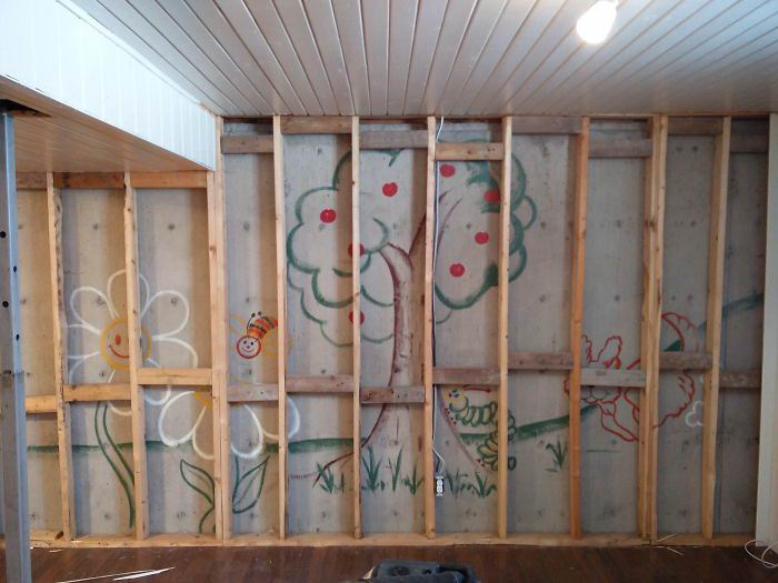 14. หลังจากที่รื้อกำแพงเพื่อรีโนเวทบ้านใหม่ ก็พบงานศิลปะของเจ้าของเก่าที่ซ่อนอยู่