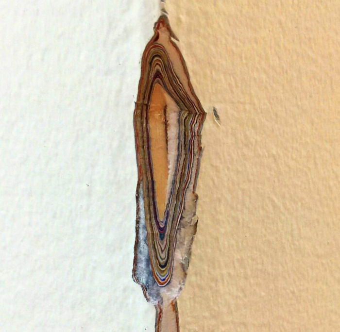 17. รอยแตกบนกำแพงบ้าน เผยให้เห็นชั้นสีที่กำแพงแห่งนี้ถูกทาทับ ว่ามันมากแค่ไหน